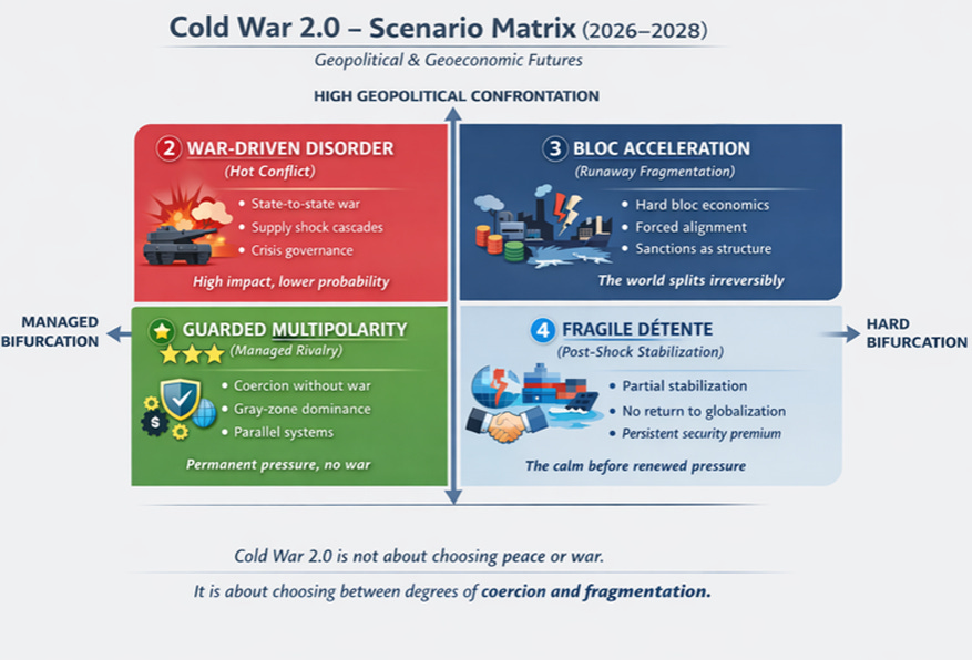 In 2021, the central question was whether Cold War 2.0 was inevitable. In 2026, that question no longer captures the strategic reality. The relevant question now is whether Cold War 2.0 can be managed without systemic collapse or uncontrolled escalation.